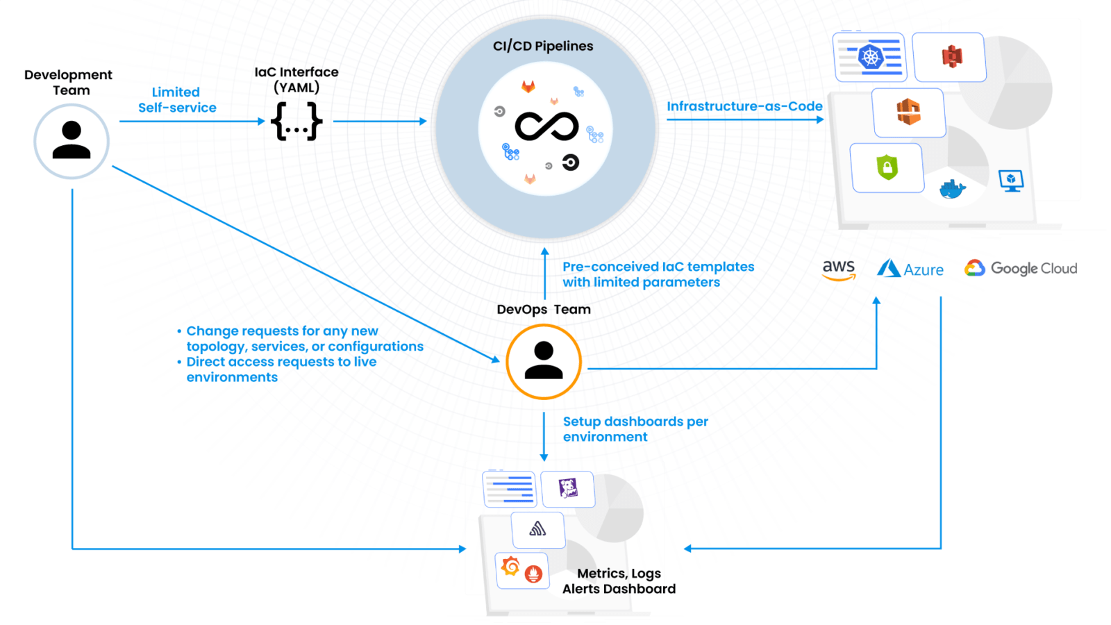 - Developer self-service for significant parts of infrastructure updates without DevOps subject matter expertise.