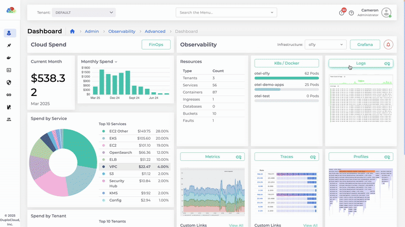 Avoid high SaaS fees and reduce operational costs. DuploCloud’s open-source approach ensures predictable, budget-friendly observability.