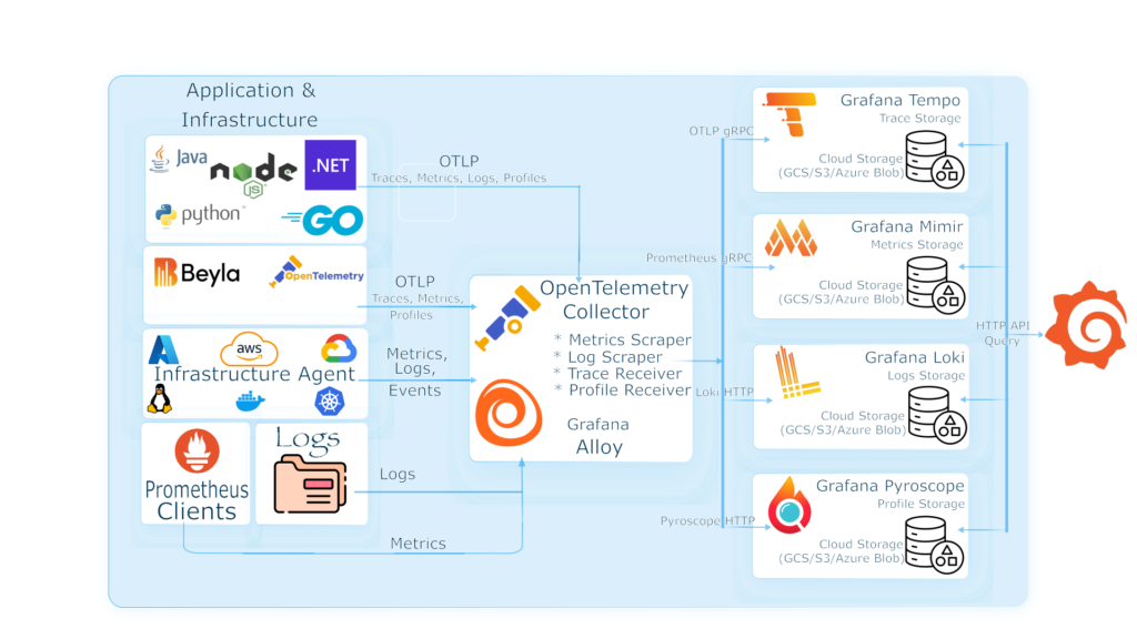 Unified visibility into logs, metrics, and traces—built on open-source technologies. Eliminate fragmented tools, simplify observability, and speed up troubleshooting.