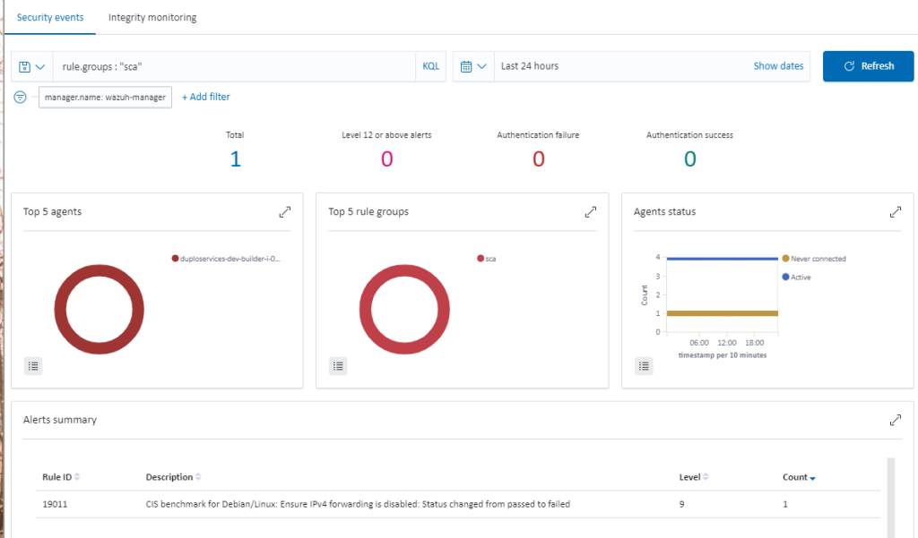 The strength of an SIEM is fundamentally judged by two factors: Rules set and Data parser. Together these determine the amount of coverage. Wazuh is a fantastic SIEM with the most elaborate coverage. Any required security functionality has its ruleset in Wazuh, be it FIM, CVE, Virus Scanning or CloudTrail. At the same time, the Wazuh platform is extensible, open source and has over 1.5K GitHub stars and 369 GitHub forks. Subsequent sections describe the location of various core modules of our PCI DSS implementation in the Wazuh dashboard.
